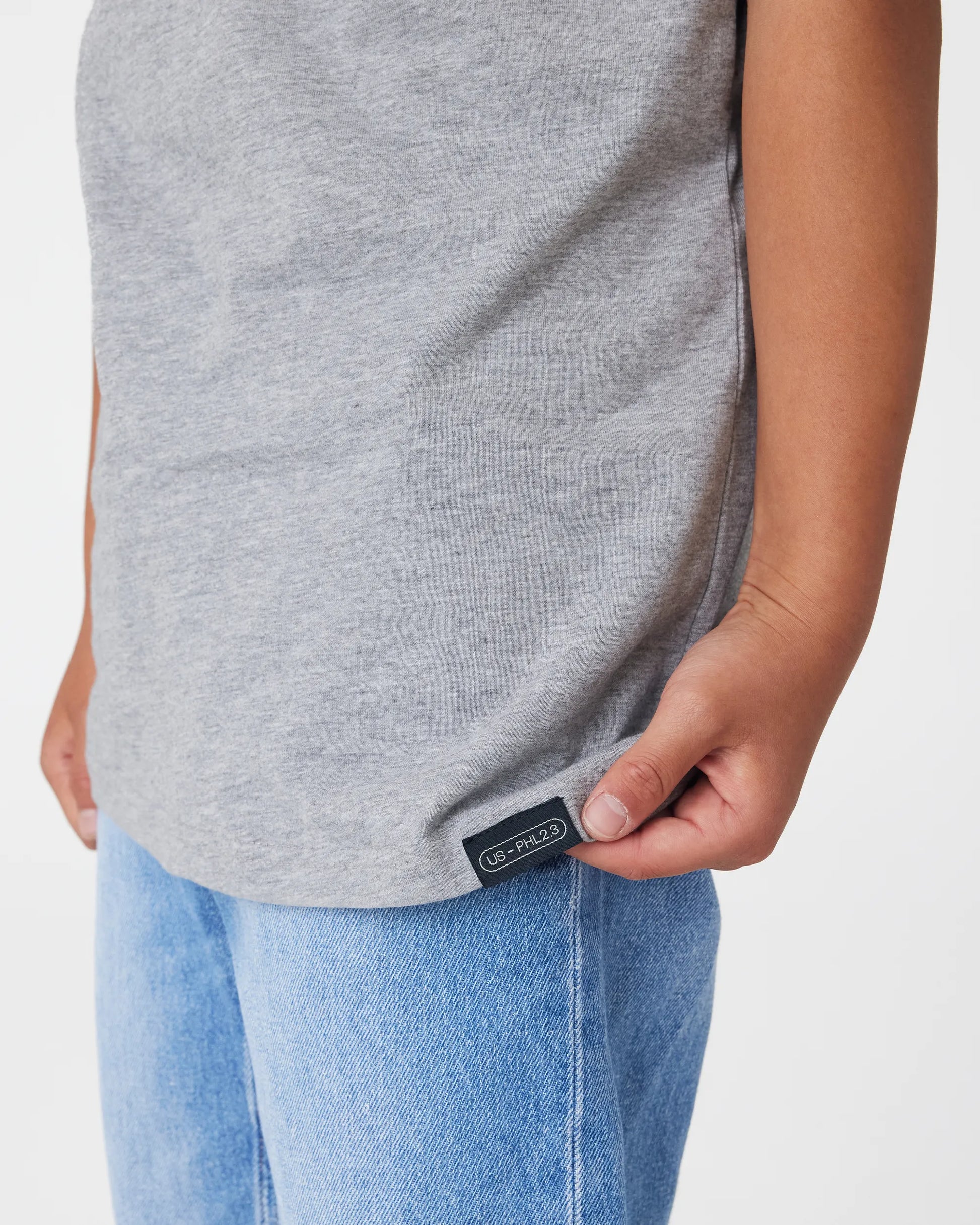 - Heather Grey T-shirt is 85% cotton, 15% viscose